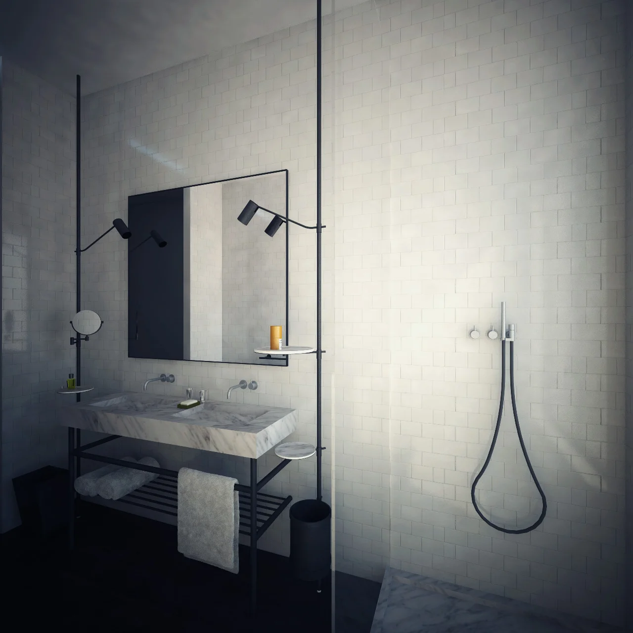 OT Apartment, 2010Bathroom design for a small apartmentSanitary line development for Stvdio, including sink support, shelve and lighting unit